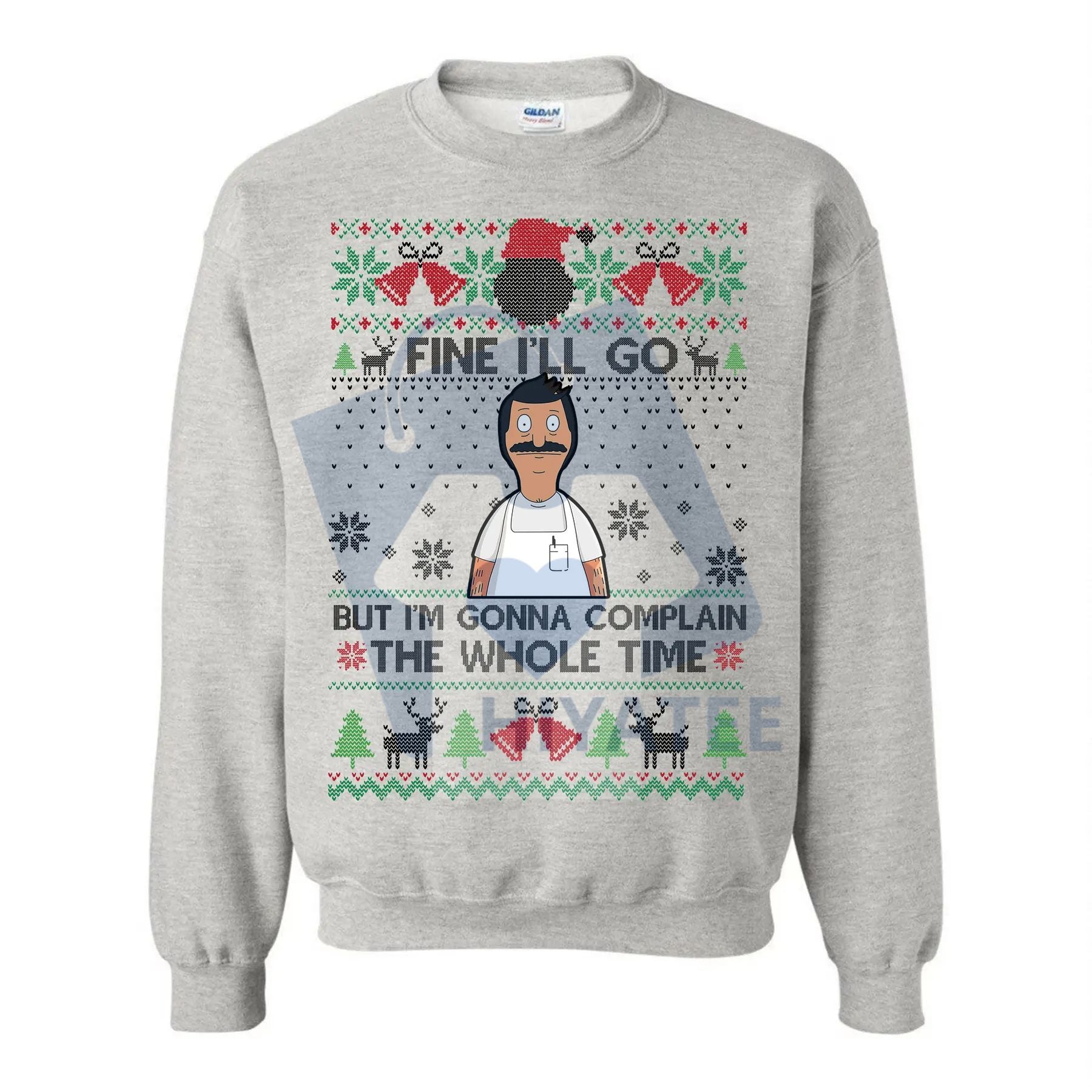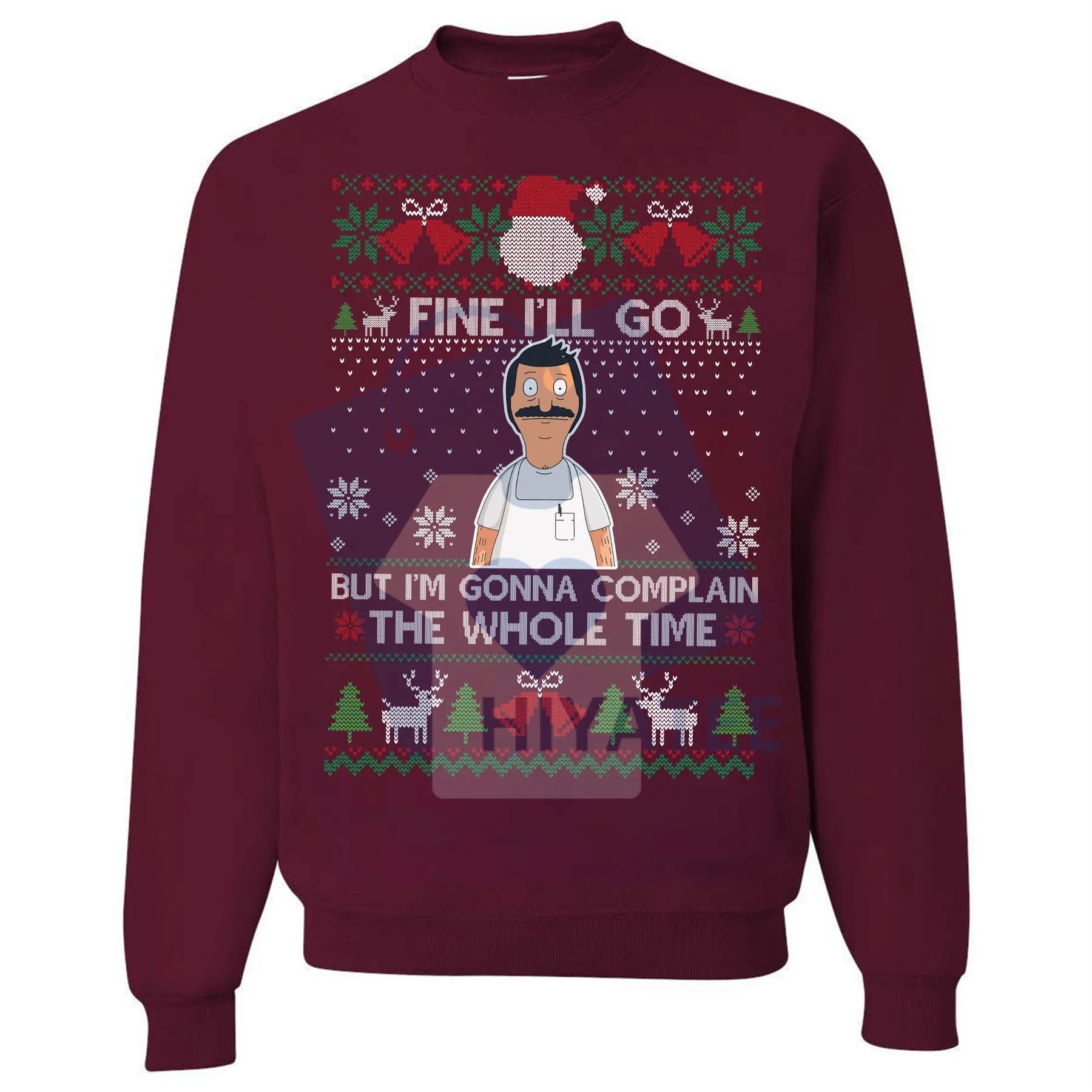 "Fine I'll Go But I'm Gonna Complain" Ugly Christmas Sweatshirt: Vintage Bob Belcher Shirt, Bob's Burgers Fan Merry Christmas Hoodie