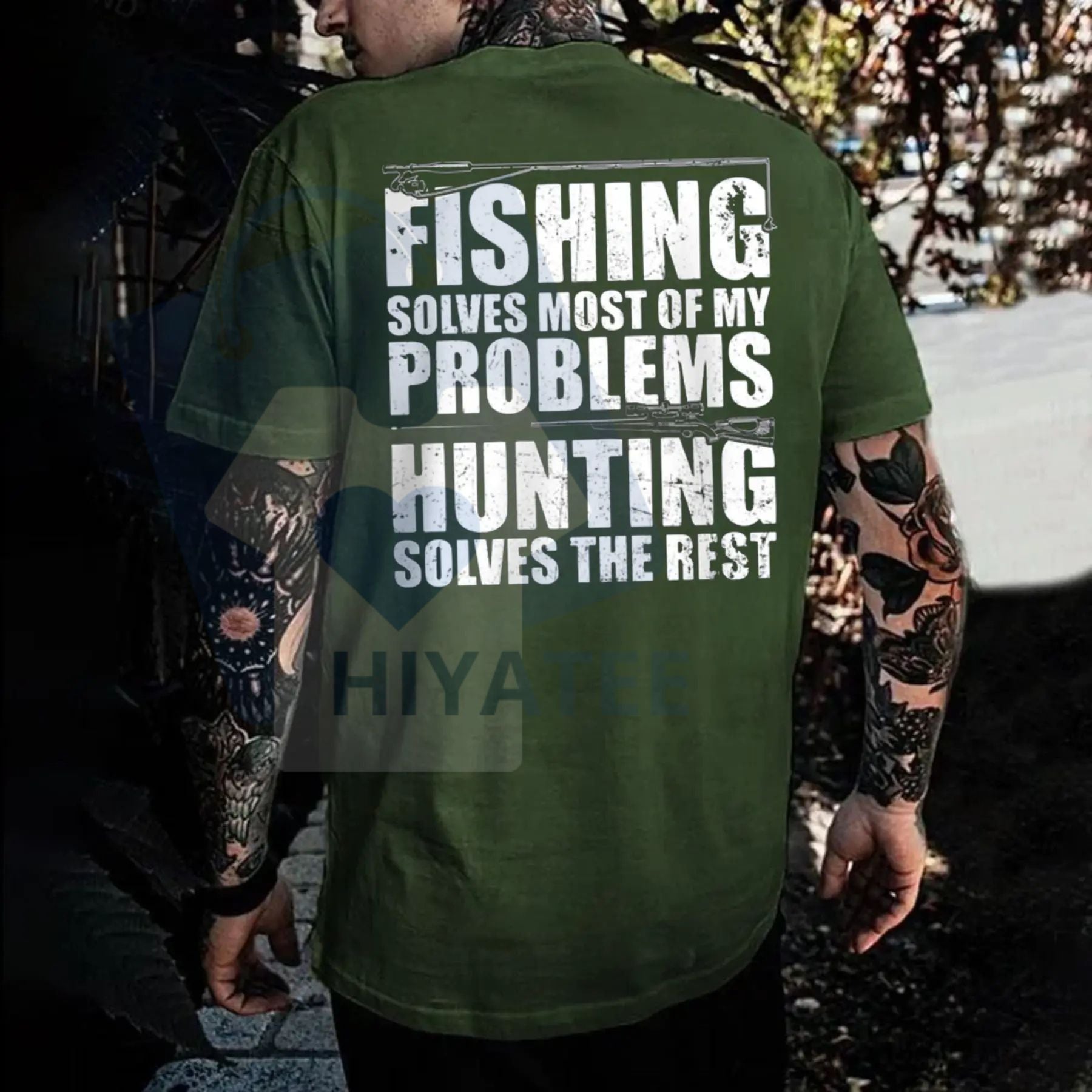• Outdoors Humor: Features the relatable, humorous quote: "Fishing Solves Most Of My Problems Hunting Solves The Rest."