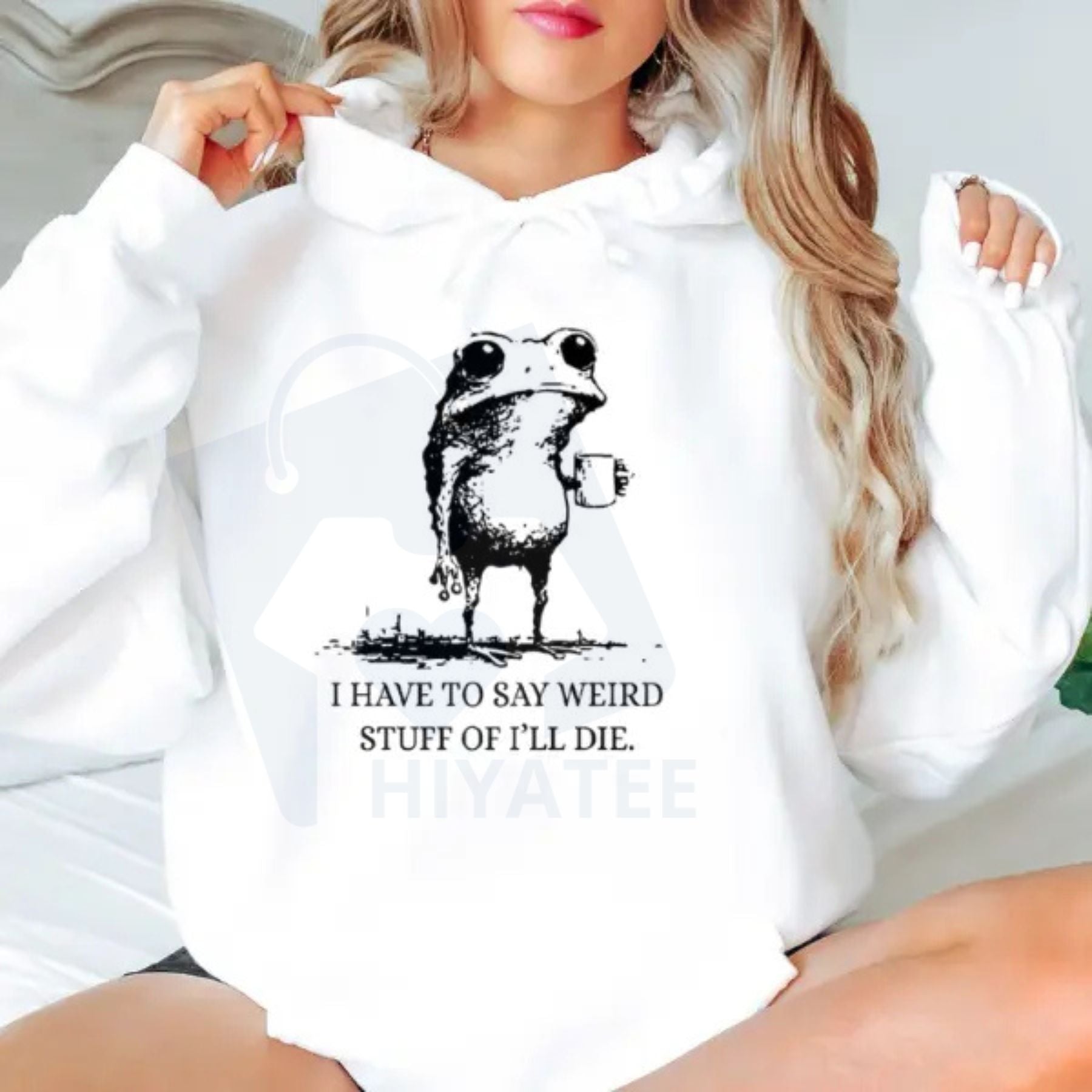 "I Have To Say Weird Stuff Or I'll Die" Frog Hoodie – Funny Unhinged Animal Parody Tee, Sarcastic Gift